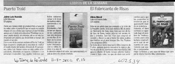 Autores chilenos - Morel, Alicia - Huenún Villa, Jaime - Puerto Trakl - Fabricante de risas