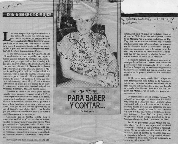 Autoras chilenas - Entrevistas - Morel, Alicia