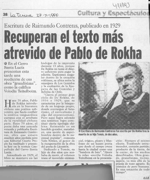 Recuperan el texto más atrevido de Pablo de Rokha [artículo] A. G. B.