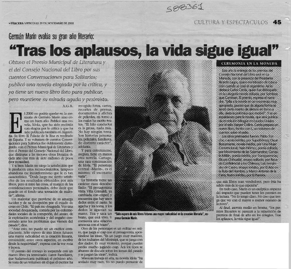"Tras los aplausos, la vida sigue igual" [artículo] A. G. B.