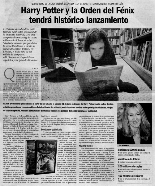 Harry Potter y la orden del Fénix tendrá histórico lanzamiento [artículo] A. G. B.