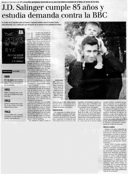 J. D. Salinger cumple 85 años y estudia demanda contra la BBC [artículo] A.G.B.