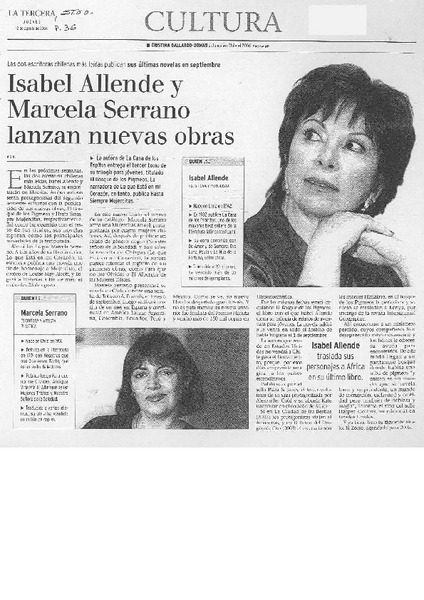 Isabel Allende y Marcela Serrano lanzan nuevas obras [artículo] A.G.B.