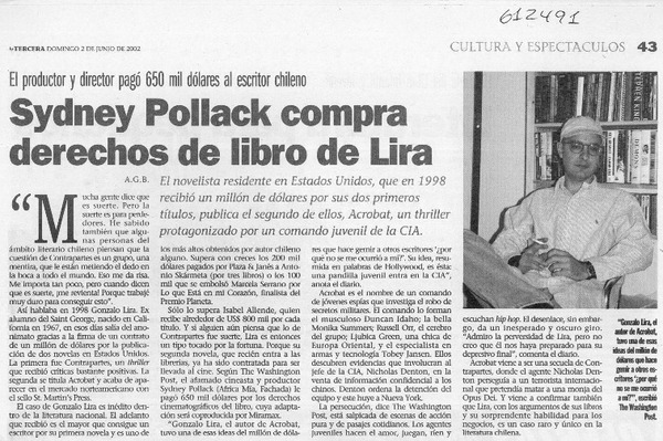 Sydney Pollack compra derechos de libro de Lira [artículo] A. G. B.
