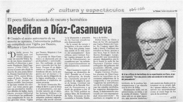 Reeditan a Díaz Casanueva [artículo] A. G. B.