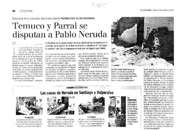 Temuco y Parral se disputan a Pablo Neruda [artículo] A.G.B.