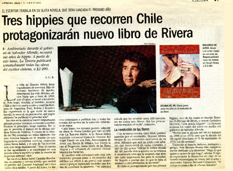 Tres hippies que recorren Chile protagonizarán nuevo libro de Rivera [artículo] A. G. B.