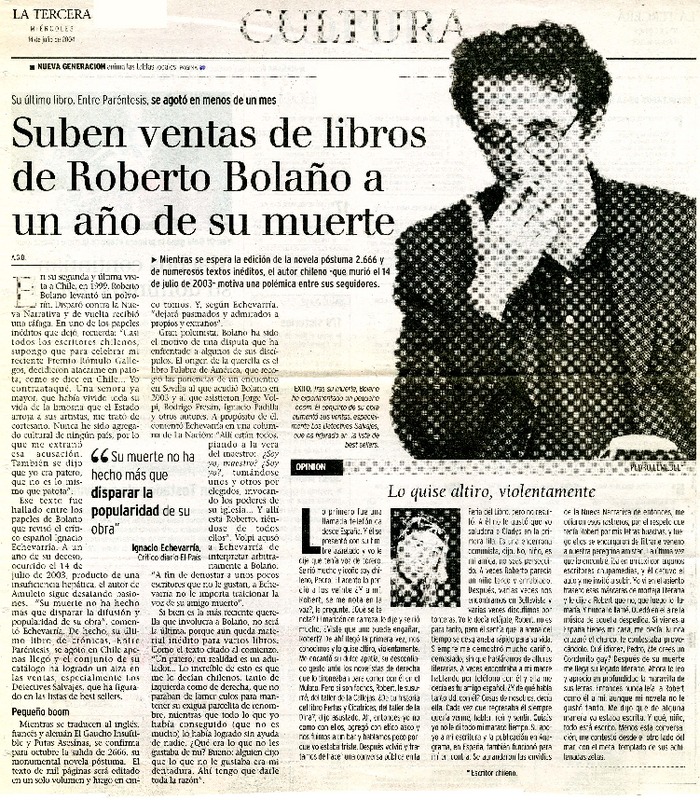 Suben ventas de libros de Roberto Bolaño a un año de su muerte [artículo] A. G. B.