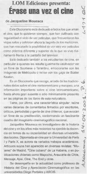 Autoras chilenas - Mouesca, Jaqueline - Érase una vez el cine