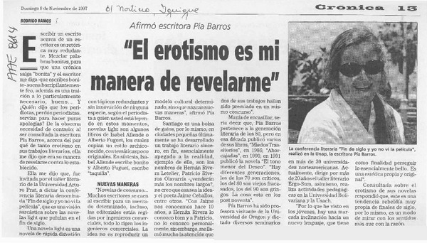 "El erotismo es mi manera de revelarme" [artículo] Rodrigo Ramos.