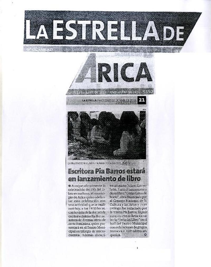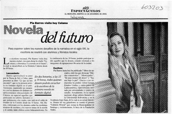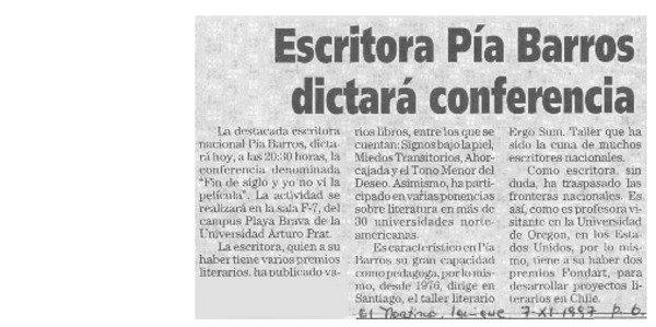 Escritora Pía Barros estará en lanzamiento de libro. [artículo]