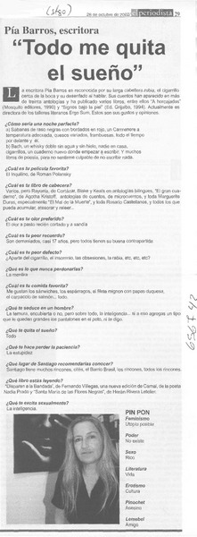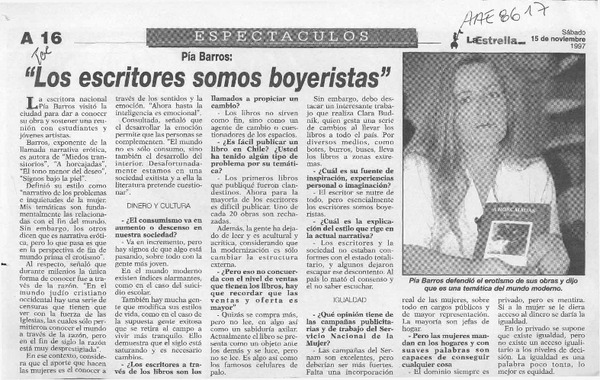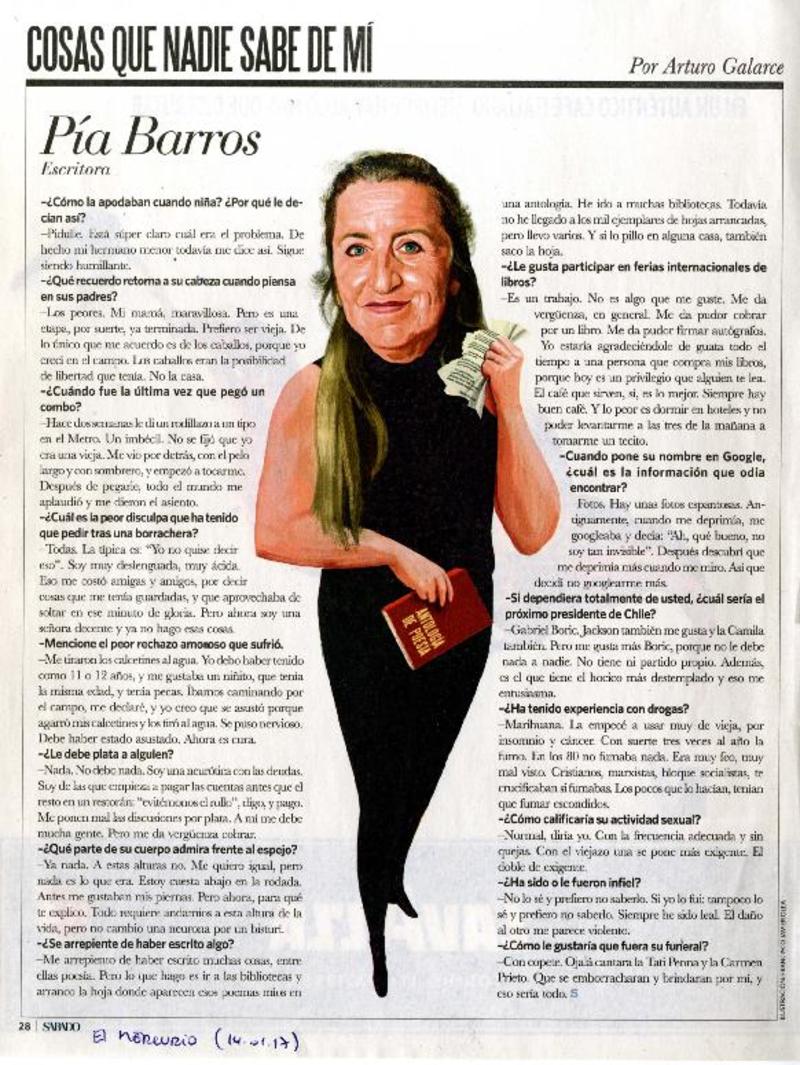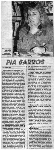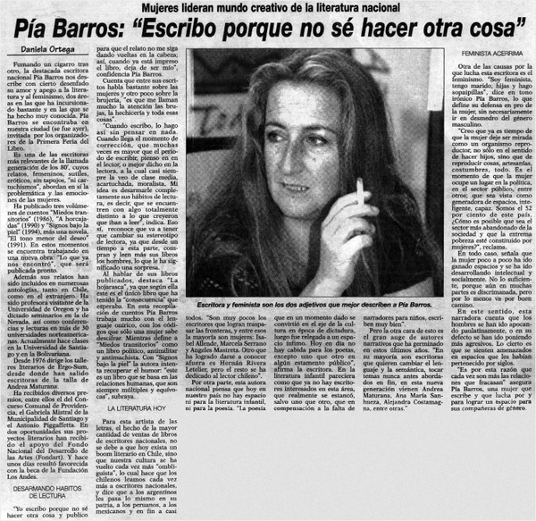 Pía Barros, "Escribo porque no sé hacer otra cosa" [artículo] Daniela Ortega.