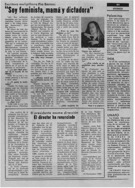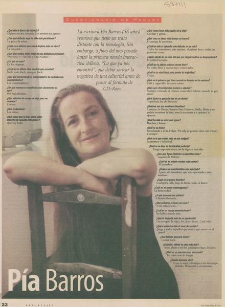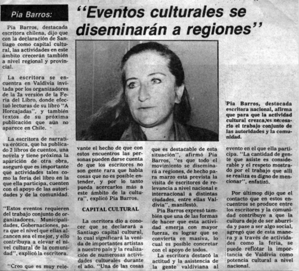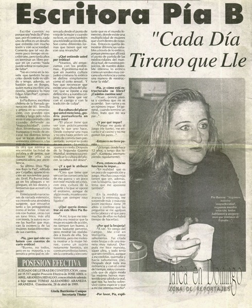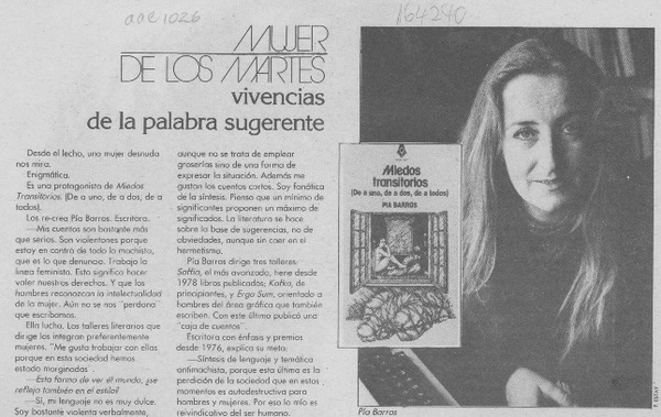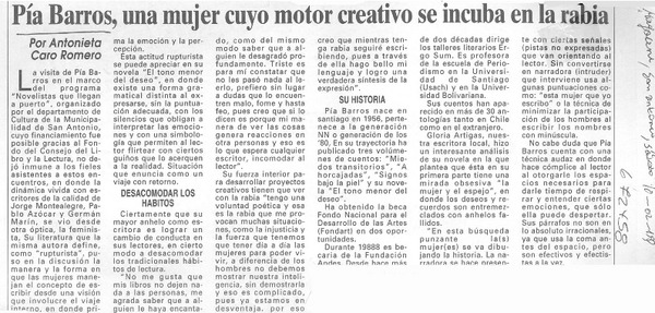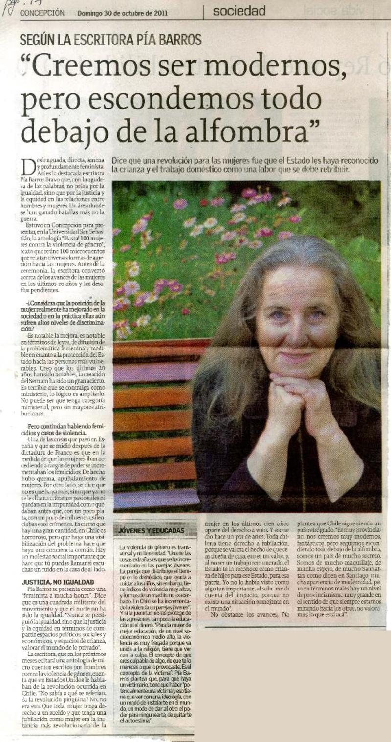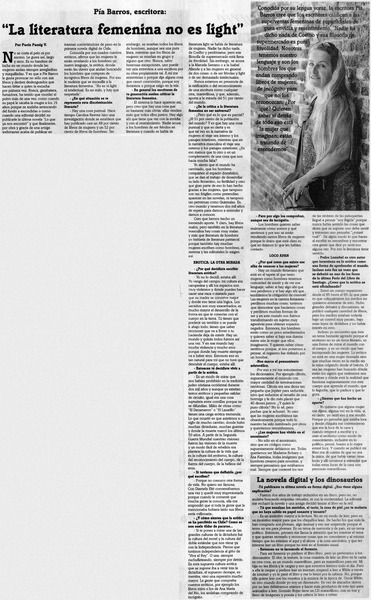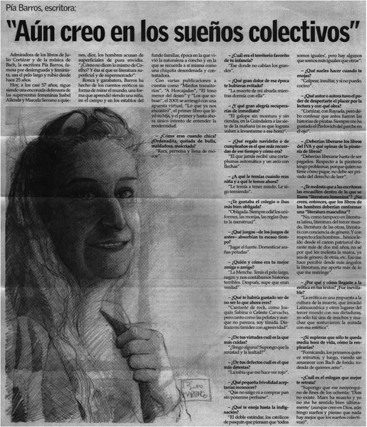 Escritora Pía Barros, "Cada día derroco al tirano que llevo dentro" [artículo] Rosamaría Echenique T.