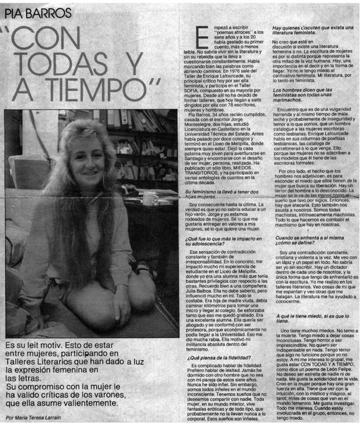 "Con todas y a tiempo" [artículo] María Teresa Larraín.