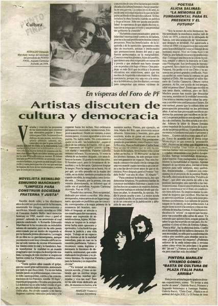 Artistas discuten de cultura y democracia [artículo] María Micaela Tobar.