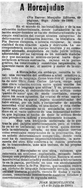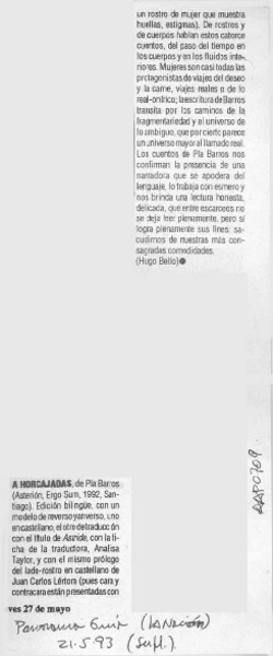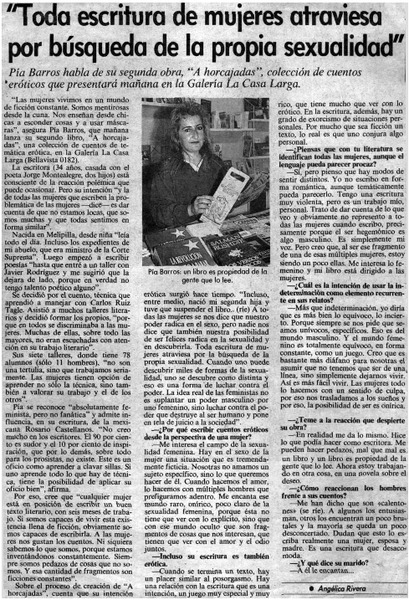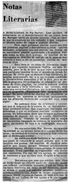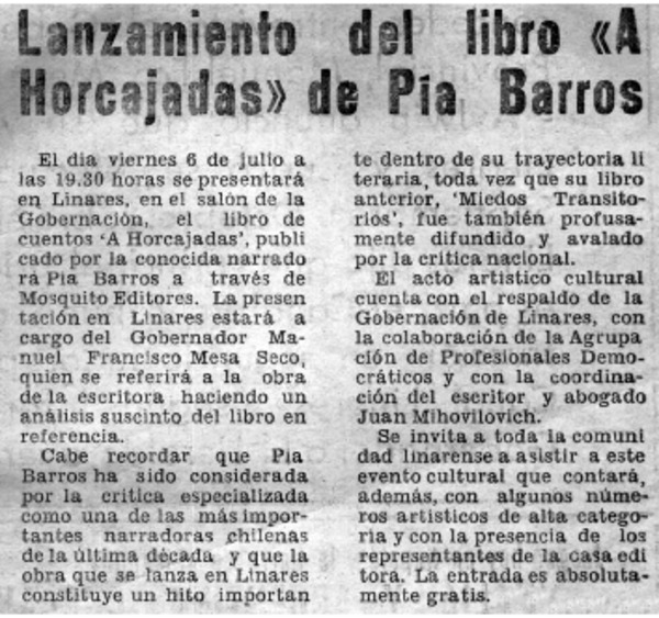 Lanzamiento del libro "A horcajadas" de Pía Barros [artículo].
