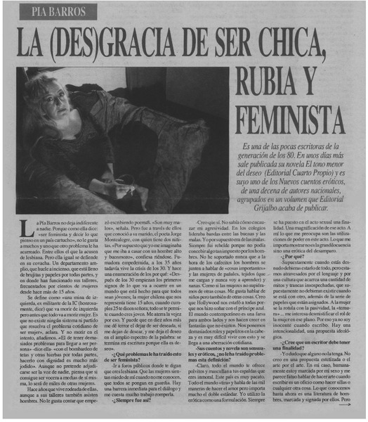 La (des)gracia de ser chica, rubia y feminista [artículo] Margarita Cea.