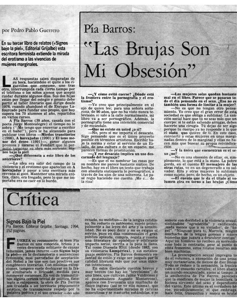 "Las brujas son mi obsesión" [artículo] Pedro Pablo Guerrero.