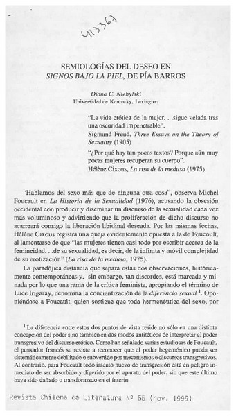 Semiologías del deseo en Signos bajo la piel, de Pía Barros [artículo] Diana C. Niebylski.