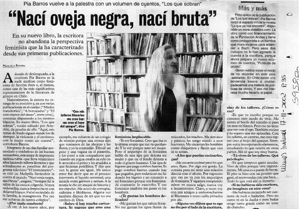 "Nací oveja negra, nací bruta" [artículo] Manuela Román