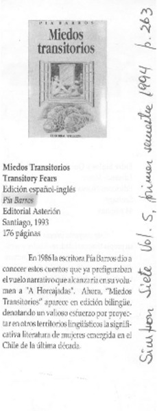 Miedos transitorios - Barros, Pía - Autoras chilenas