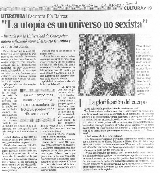 "La utopía es un universo no sexista" [entrevista]. [artículo] :
