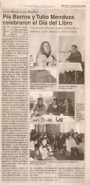 Liceo María Luisa Bombal : Pía Barros y Tulio Mendoza celebraron el Día del Libro [artículo].