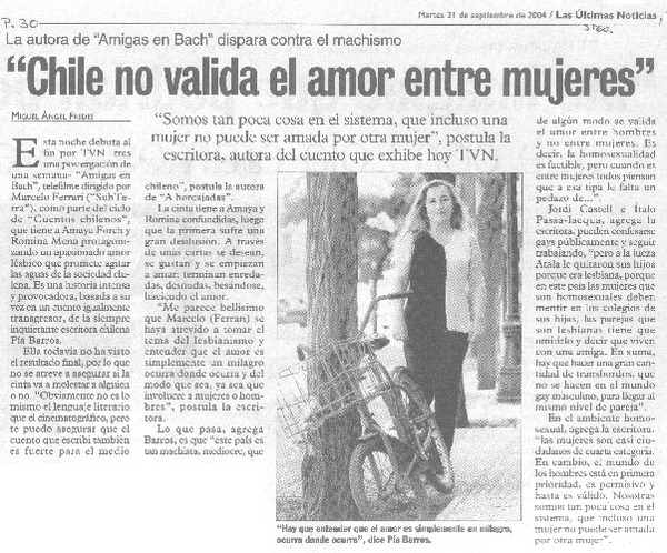 "Chileno valida el amor entre mujeres" [artículo]Miguel Angel Fredes.