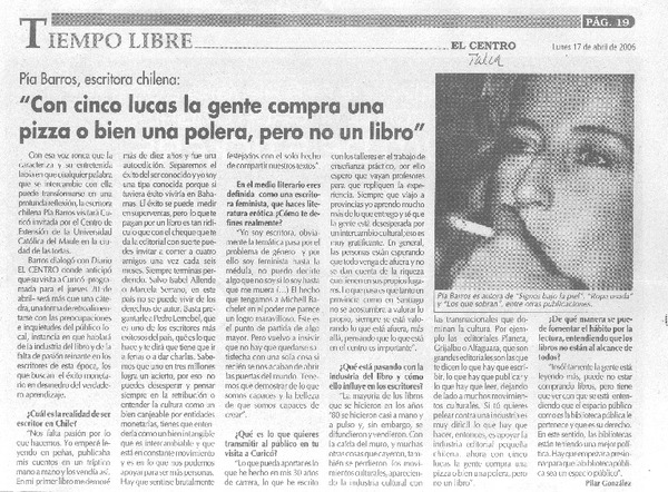"Con cinco lucas la gente compra una pizza o bien una polera, pero no un libro" (entrevistas) [artículo]Pilar González.