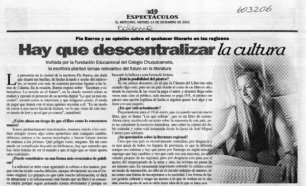 Hay que descentralizar la cultura [entrevista]. [artículo] :