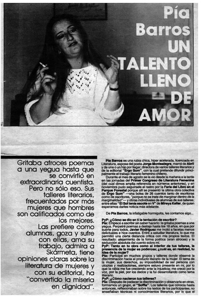 Pía Barros un talento lleno de amor [artículo] Teresa Calderón.