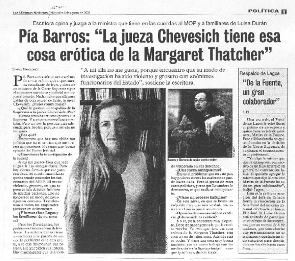 "La jueza Chevesich tiene esa cosa erótica de la Margaret Tatcher" [entrevista] [artículo] Sergio Mardones