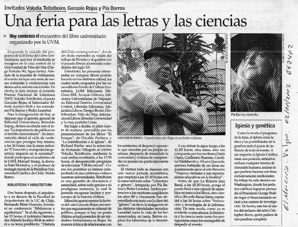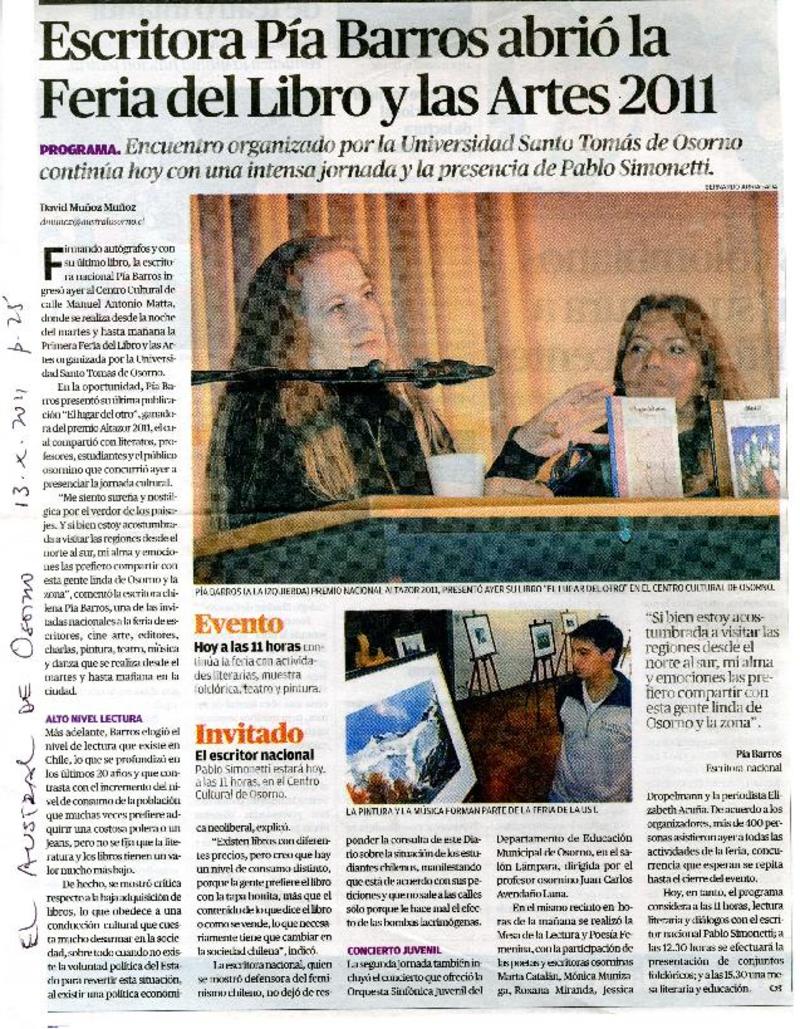 Escritora Pía Barros abrió la Feria del Libro y las Artes 2011 [artículo] David Muñoz Muñoz.