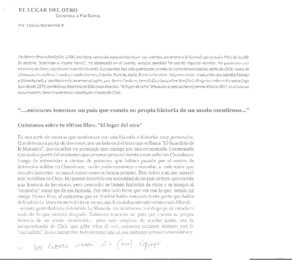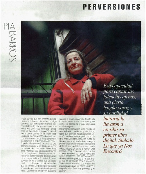 Autoras chilenas - Entrevistas - Barros, Pía - Lo que ya nos encontró
