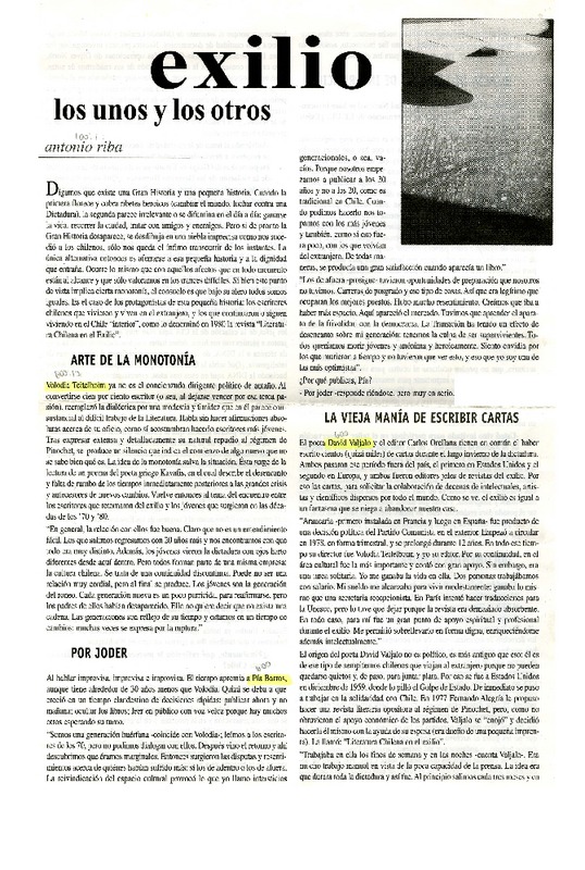 Exilio los unos y los otros [artículo] Antonio Riba.