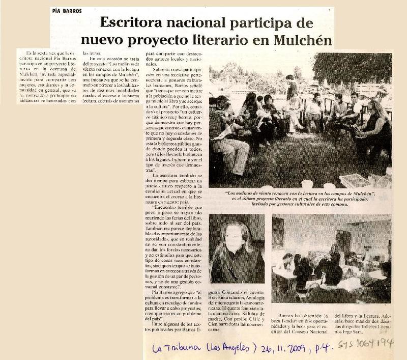Escritora nacional participa de nuevo proyecto literario en Mulchén. [artículo]