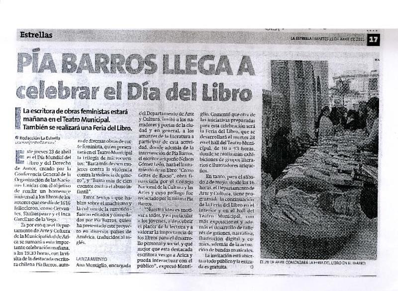 Pía Barros llega a celebrar el día del libro. [artículo]