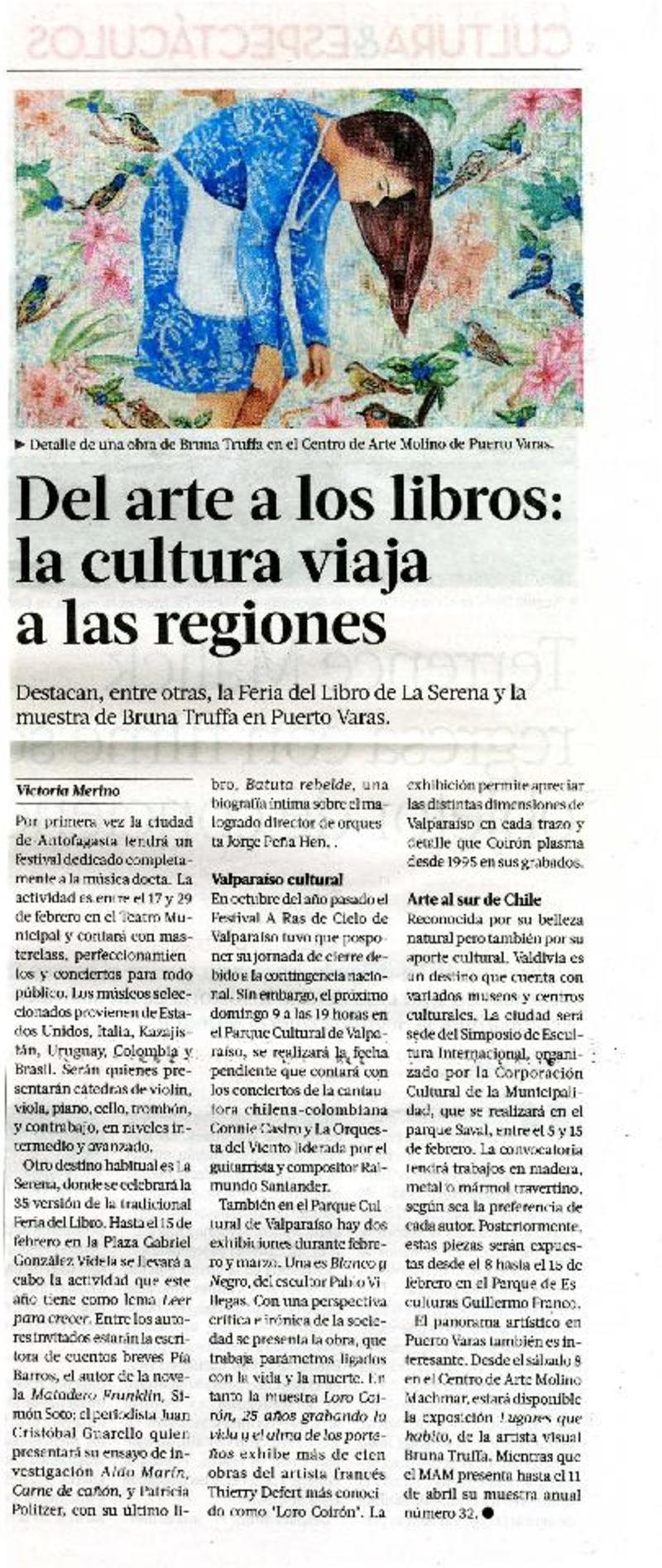 Del arte a los libros la cultura viaja a las regiones [artículo] : Victoria Merino.