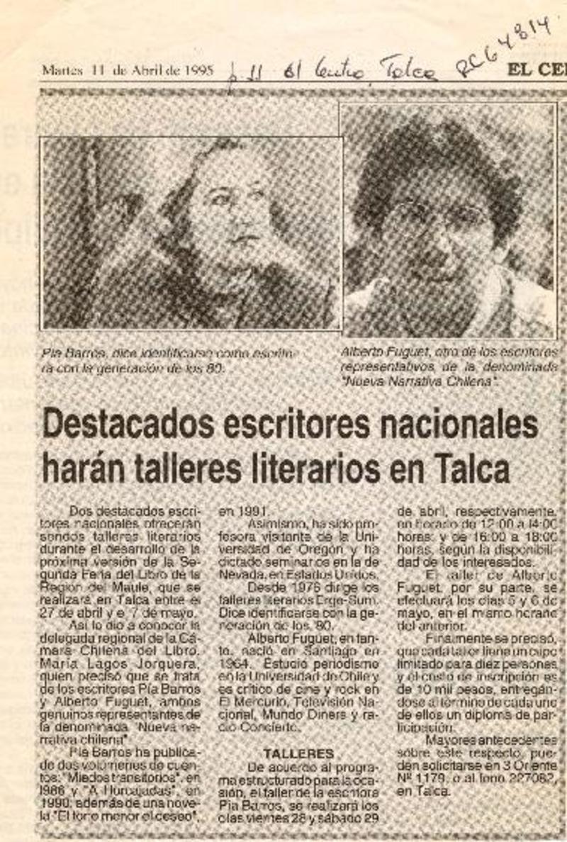 Destacados escritores nacionales harán talleres literarios en Talca [artículo].