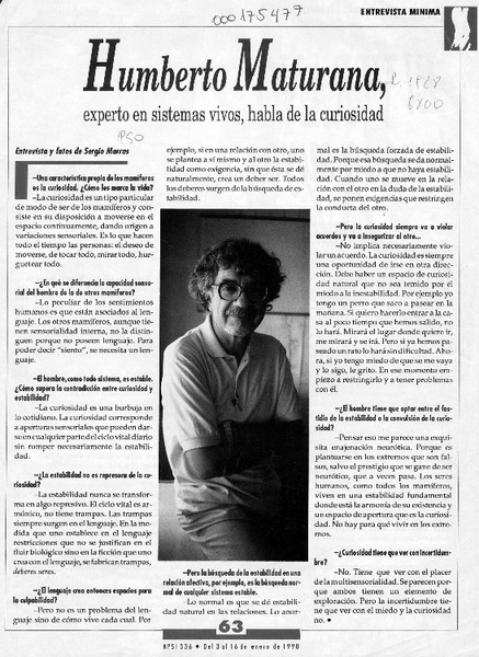 Autores chilenos - Maturana R., Humberto - Entrevista