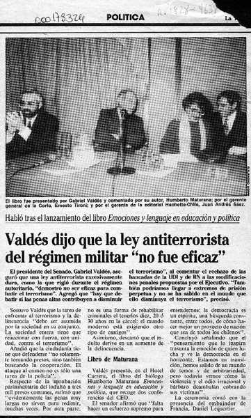 Valdés dijo que la ley antiterrorista del régimen militar "no fue eficaz" [artículo].