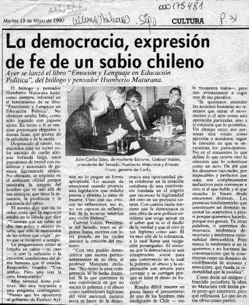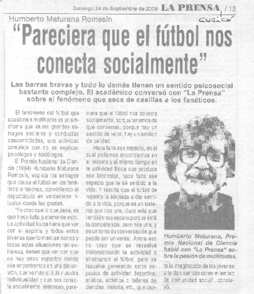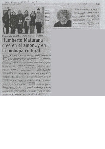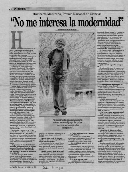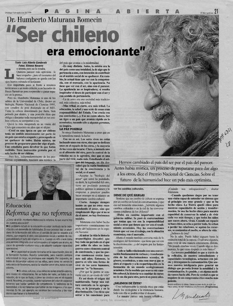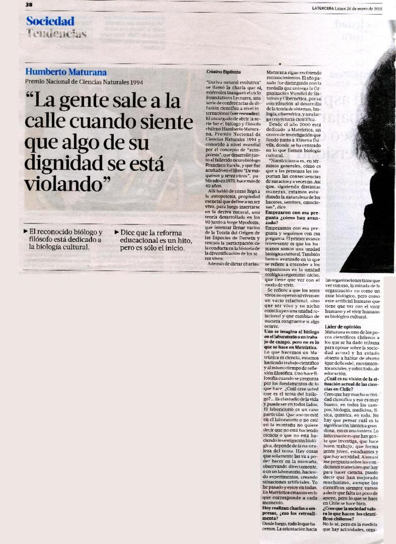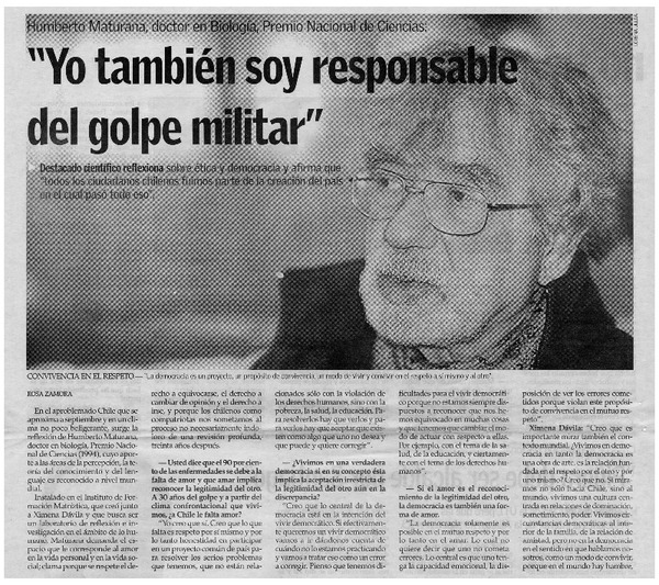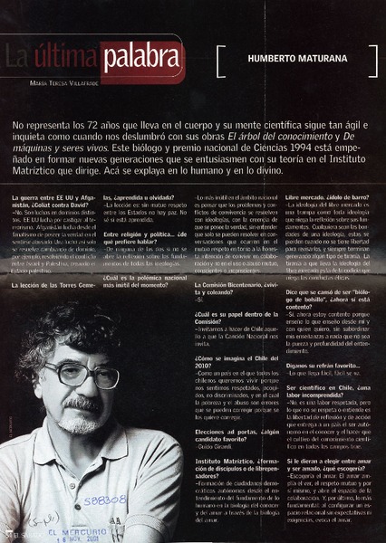 Humberto Maturana: "Chile puede cambiar si quiere" [entrevista] [artículo] Juan Diego Montalva.