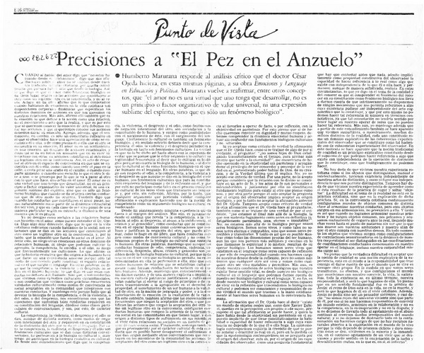 Precisiones a "El pez en el anzuelo" [artículo] Humberto Maturana.