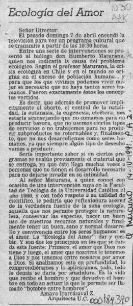Ecología del amor [artículo] Amaya Irarrázaval Z.