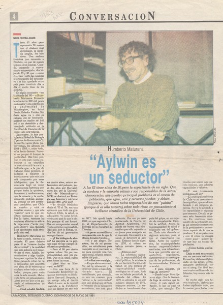 "Aylwin es un seductor" [entrevista] [artículo] : María Cristina Jurado.