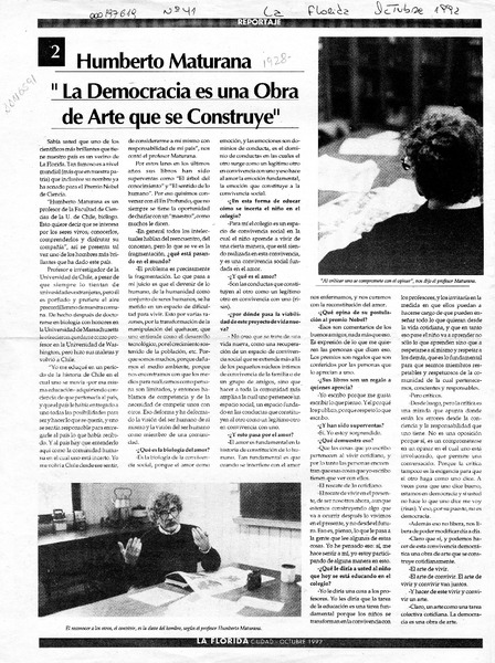 H. Maturana, "La paz es una obra de arte" [artículo].