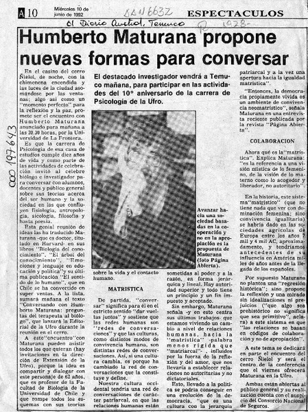 Humberto Maturana propone nuevas formas para conversar [artículo].