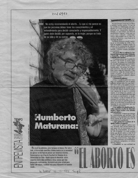 Humberto Maturana, "El Aborto es legítimo" [artículo] Patricia Bravo.