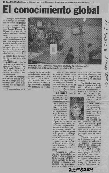 Humberto Maturana, Premio Nacional de Ciencias [artículo] Gustavo Hoecker.