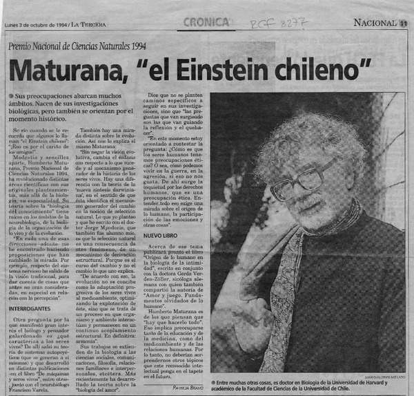 Maturana, "el Einstein chileno" [artículo] Patricia Bravo.